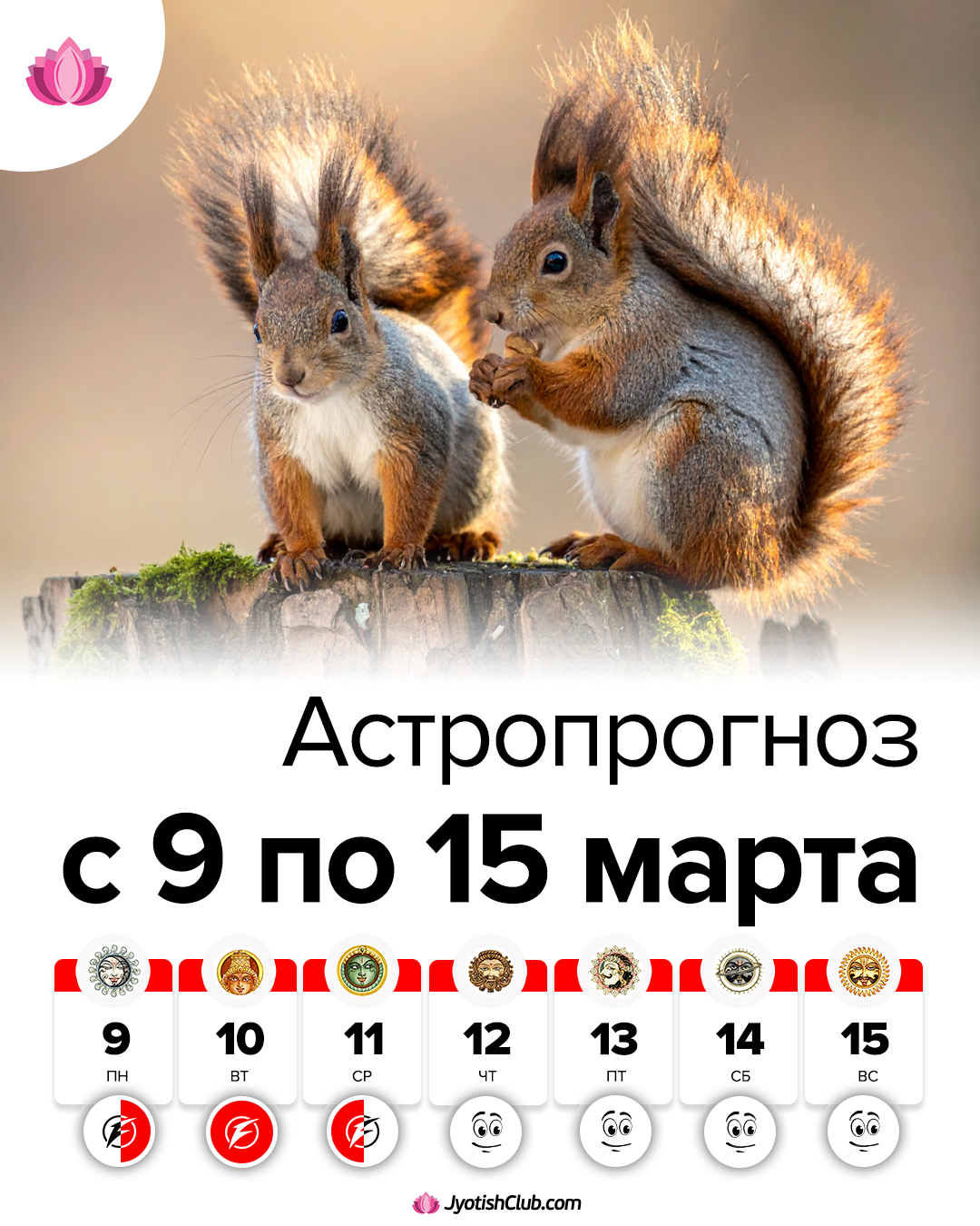 Друзья, нас ожидает разная по-своему настроению неделя. Первая половина будет более сложной, а вторая — спокойной и нейтральной. Напряженными днями будут вторая половина понедельника (9 марта), вторник (10 марта) и первая половина среды (11 марта). Все остальное время пройдет в нейтральных астрологических энергиях. На этой неделе мы будем проживать сложный астрологический транзит Луны через знак […]