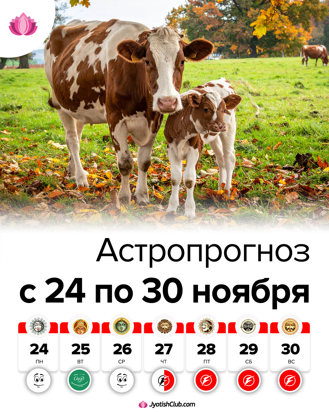 С 24 по 30 ноября Луна продолжает быть растущей. В период роста Луны рекомендуется заниматься делами, в которых требуется развитие и расширение. Помимо этого, растущая Луна благоприятна для важных покупок, приобретений и заключения деловых контрактов.