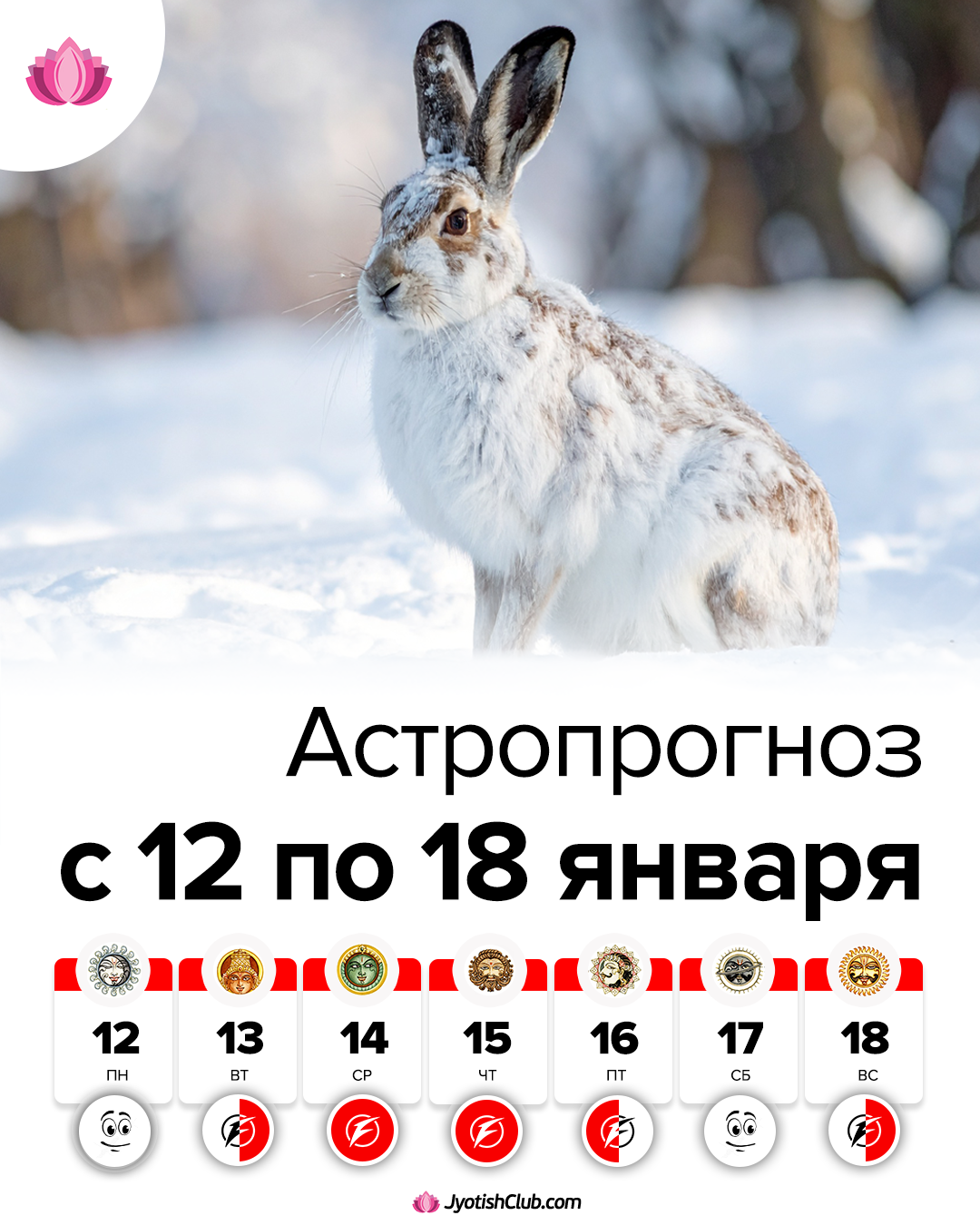 Друзья, мы входим в период нескольких недель со сложными астрологическими транзитами. Нейтральными днями будут понедельник (12 января), первая половина вторника (13 января), вторая половина пятницы (16 января), суббота (17 января) и первая половина воскресенья (18 января). Все остальное время пройдет в напряженных энергиях.